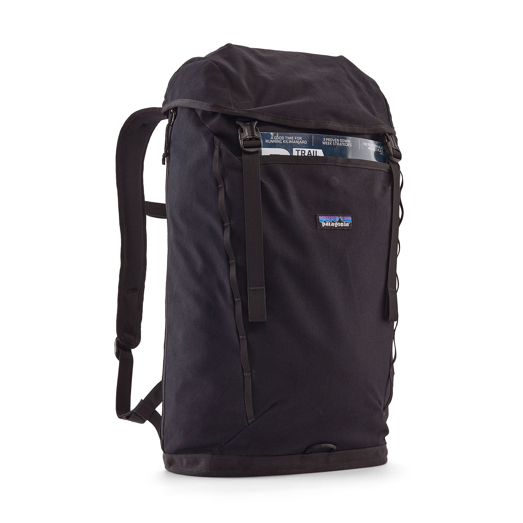 Su diseño inspirado en mochilas de escalada cuenta con puntos de sujeción para sujetar zapatos, equipo adicional o una botella de agua. El paquete se sostiene por sí solo para facilitar su carga.